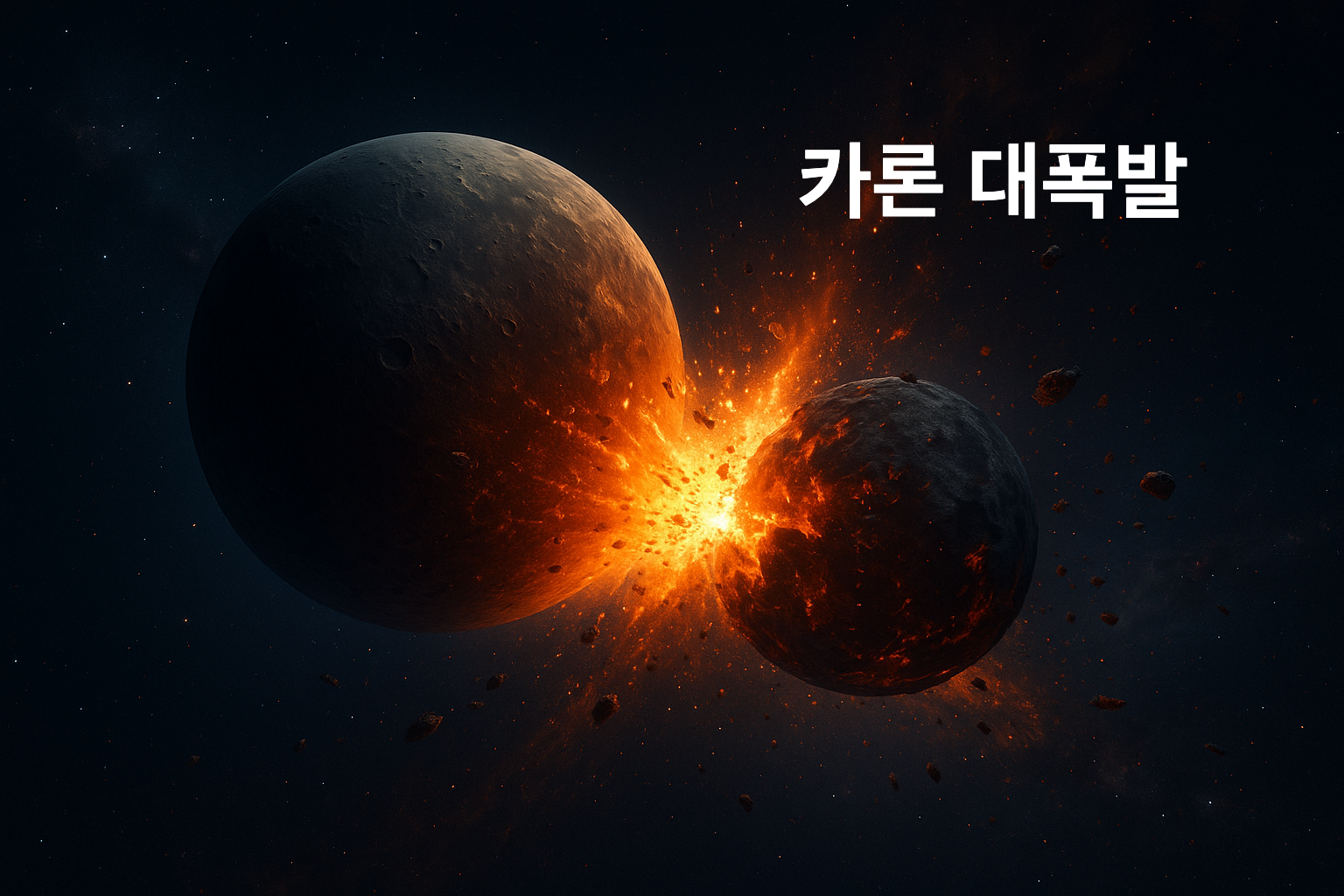 그렇다면 이렇게 독특한 천체 시스템은 어떻게 탄생했을까요? 과학자들이 주목한 답은 바로 **‘카론 대폭발 가설(Giant Impact Hypothesis)’**입니다.