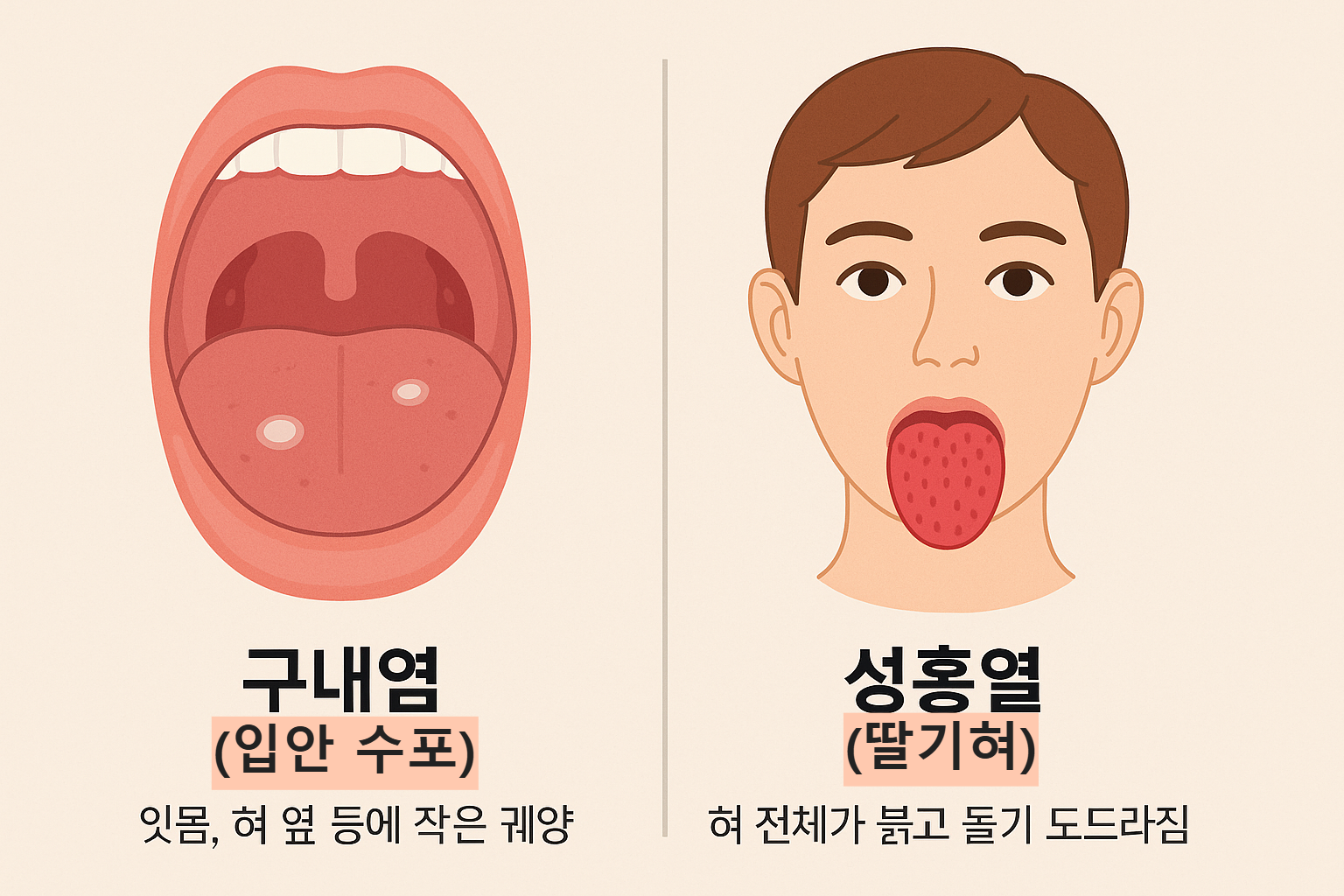 구내염(입안 수포) vs 성홍열(딸기혀) 비교 👄👅