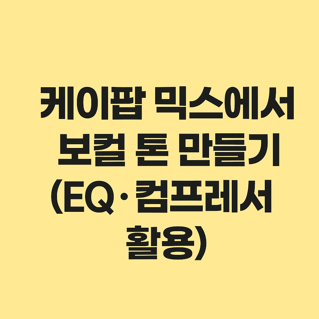 케이팝 노래를 들을 때 가장 먼저 귀에 들어오는 건 보컬입니다. 🎤 아무리 멋진 코드와 편곡이 있어도, 보컬이 묻히면 곡의 매력이 반감돼요. 그래서 믹스 단계에서 **보컬 톤(Tone)**을 잘 만드는 게 핵심입니다. 오늘은 보컬을 선명하고 곡에 어울리게 만드는 EQ와 컴프레서 활용법을 기초부터 심화까지 정리해 보겠습니다.