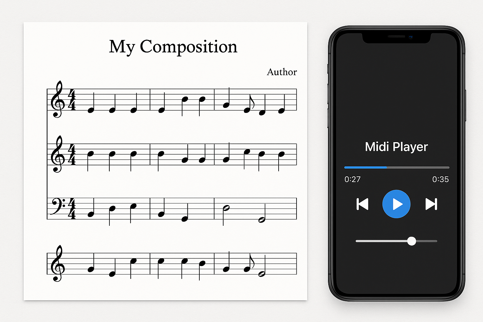 - 작곡 프로그램에서 ‘내보내기’(Export) 기능으로 미디(MIDI) 파일을 저장합니다.