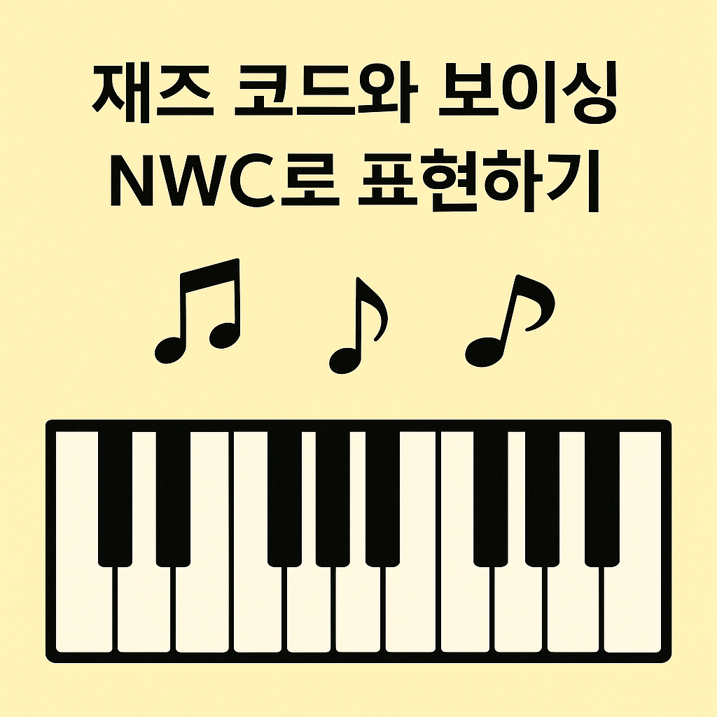 재즈 음악은 풍부한 화성과 유연한 보이싱(Voicing)으로 유명합니다. 🎷🎹 케이팝이나 영화음악에서도 재즈 코드와 보이싱을 적절히 사용하면 세련된 분위기를 더할 수 있죠. 이번 글에서는 **NWC(Notation Composer)**를 활용해 재즈 코드를 입력하고, 다양한 보이싱 기법을 적용하는 방법을 정리해 보겠습니다.