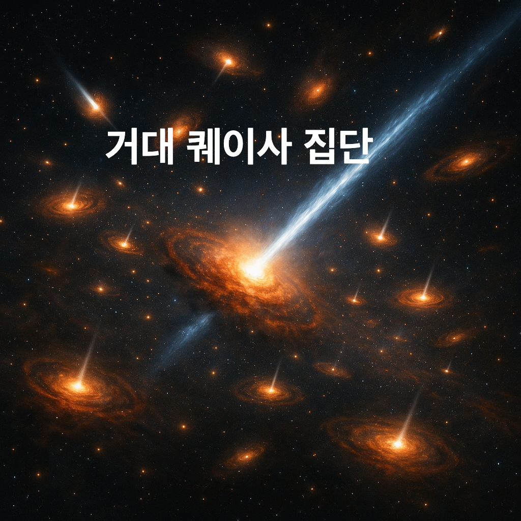 우주 초기에는 지금보다 훨씬 더 격렬하고 에너지가 넘치는 천체들이 존재했습니다. 그 중 가장 극적인 존재 중 하나가 퀘이사(Quasar)이며, 이들이 모여 형성된 ‘거대 퀘이사 집단’은 마치 우주 속 거대한 에너지 도시와 같습니다.